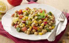 Pois chiches,tomates,oignons rouges,concombre,maÏs et menthe.